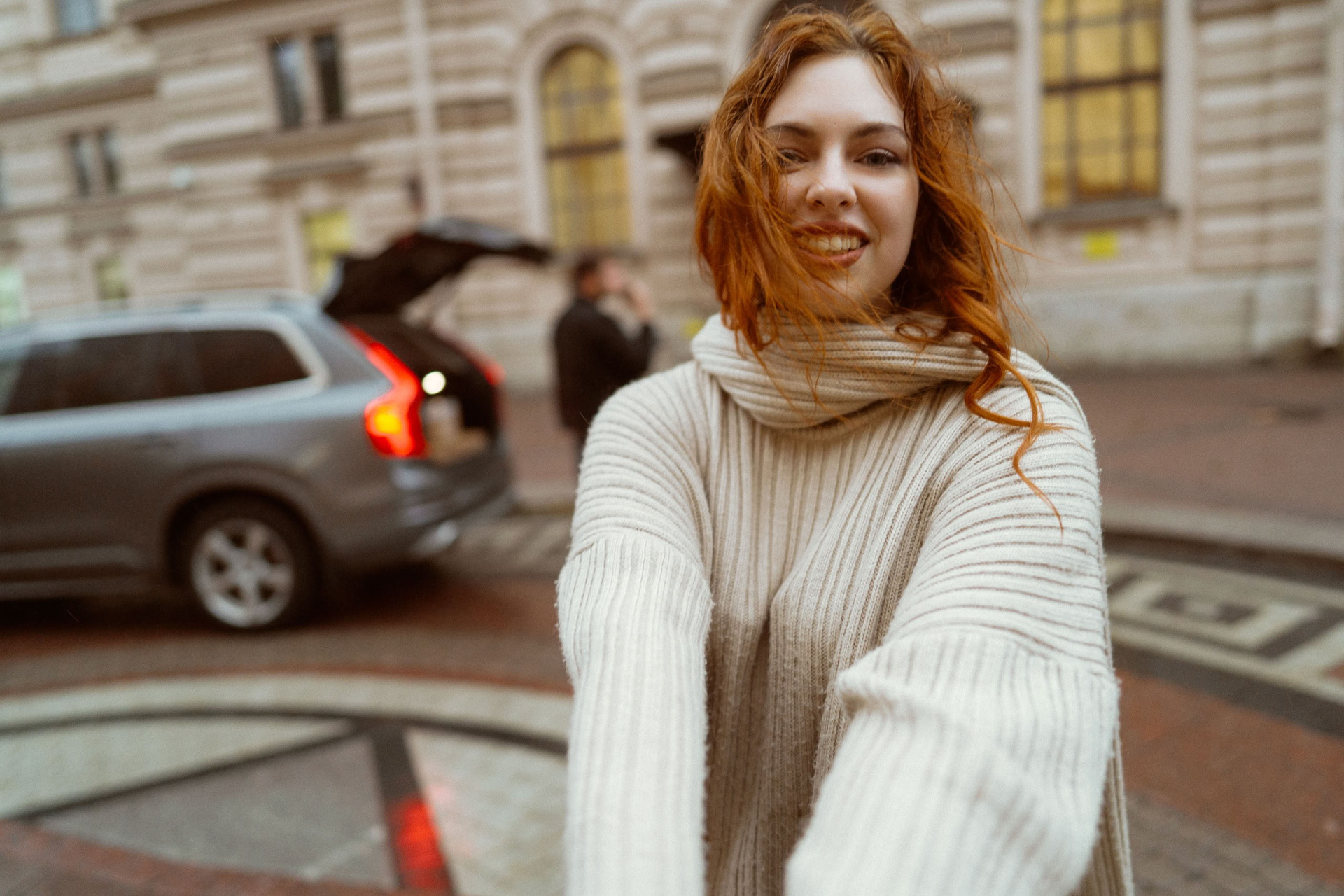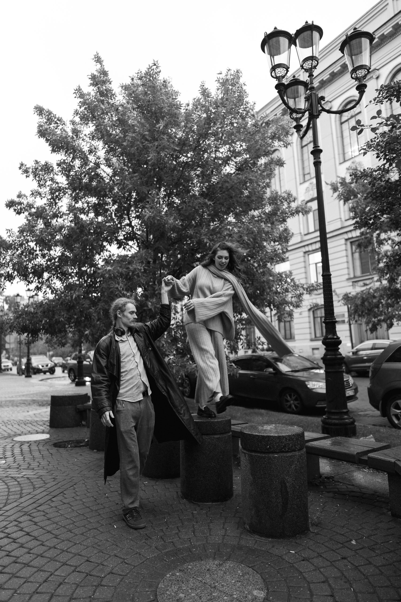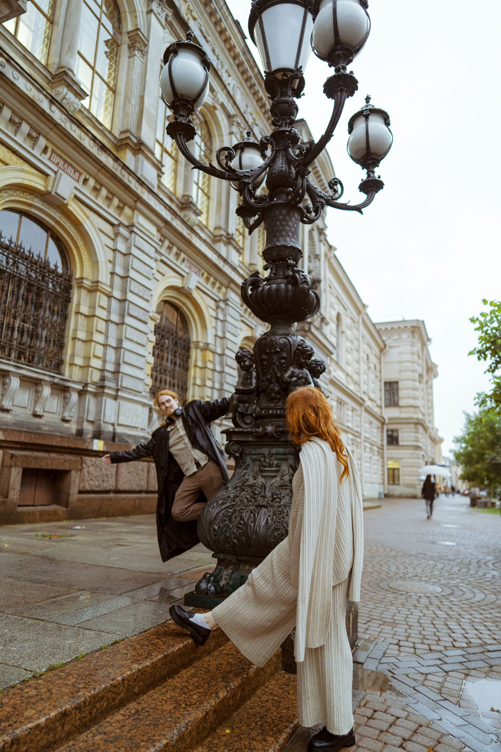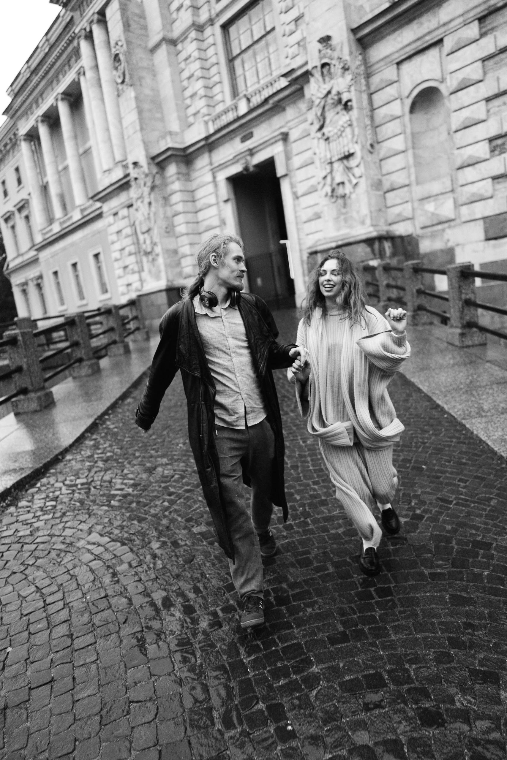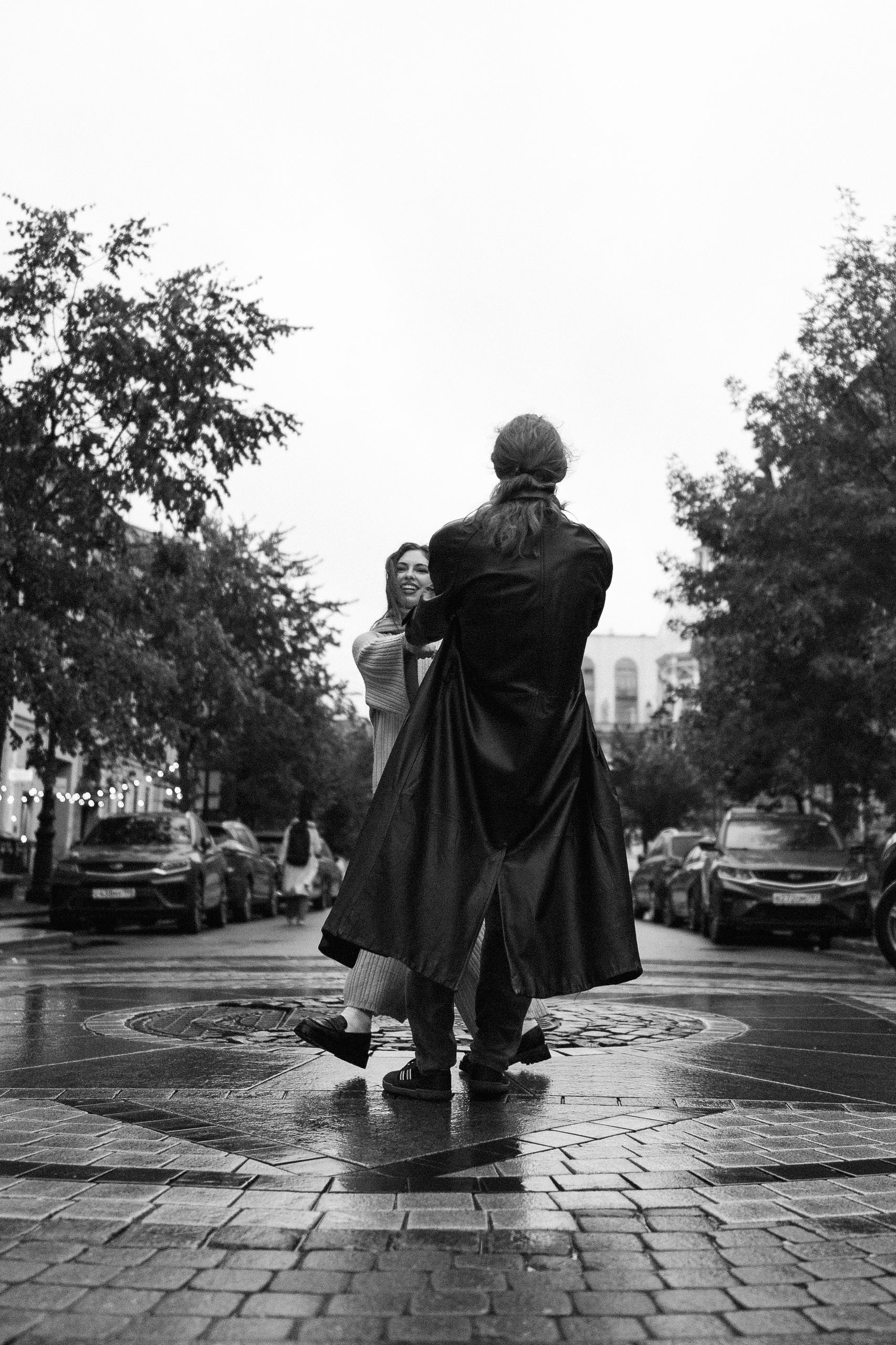 С Валерой и Олей мы всё спланировали заранее — они прилетели из Москвы, выбрали локации, обсудили стиль. Но в день съёмки Петербург устроил настоящий ливень, и вся наша подготовка чуть было не оказалась под водой — в прямом смысле.