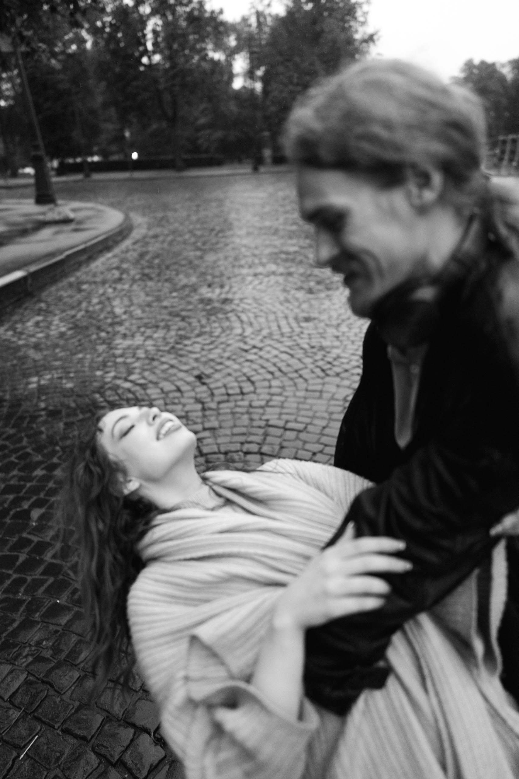 Мы прошли вдоль Фонтанки в сторону Михайловского замка. Мокрые мостовые, отражения, близость пары — всё слилось в короткую, но очень живую историю. Уже у замка дождь усилился — съёмку пришлось закончить раньше, чем хотелось бы, но, возможно, в этом и была прелесть: не успеть всё, оставить немного недосказанности.